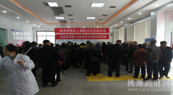 为进一步做好视力残疾预防服务,10月17日上午,桃源县残联结合“不忘初心、牢记使命”主题教育工作开展残疾人精准康复服务行动配合打赢脱贫攻坚战,开展了残疾人康复扶贫现场活动暨2019年秋季白内障免费筛查活动,为我县近600余人进行白内障免费筛查。活动中,来自全县28个乡镇(街道)的疑似白内障患者分为四个时间段进行筛查,视力检查、血糖测量、白内障检查等环节在工作人员的安排下有条不紊的进行。据了解,此次免费筛查活动将为符合手术条件的128名白内障患者提供免费的白内障手术服务,恢复白内障患者的视力。