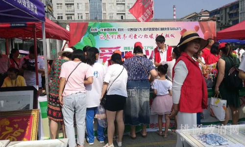 6月10日上午,县工会广场热闹非凡、人头攒动。桃源县残疾人手工制作产品爱心义卖活动在这里火热进行。此次活动由桃源县生意人爱心联盟承办,领湘鲜果连锁超市、卓尔珠宝、刘老树茶业等商家协办。县残联理事长文俊、副理事长江兴权带领助残志愿者参加了义卖活动。活动展出陬市镇阳光家园聚爱巧手坊的残疾人作品有手工串珠、手工香皂、手工提包、钻石贴花、家庭手工艺品、十字绣作品、书画等类作品500多件。据统计,当天义卖收入1.5万元。