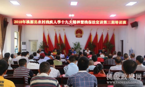 近日,桃源县组织全县 270名残疾人集中学习党的十九大精神。县残联在举办的全县农村残疾人实用技术培训班上,专门设置了党的十九大精神课程,专题宣讲党的十九大重要精神及贯彻落实举措。来自全县各乡镇、街道的270名贫困残疾人或贫困残疾人家庭成员分三期参加培训,每期集中学习4天。参训学员纷纷表示,这次培训收获大,不仅学到了种植、养殖实用技术,而且了解了党的十九大精神,开阔了视野,增强了脱贫增收奔小康的信心和能力。
