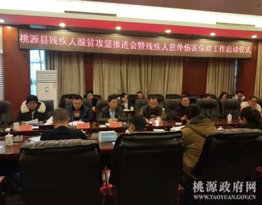 启动仪式由副理事长江兴权主持,各乡镇(街道)残联理事长和县残联全体干部职工参加启动仪式,常德市人保财险公司主要客户部经理刘云芳、桃源县人保寿险公司经理李建明应邀出席启动仪式。在启动仪式上,县残联宣教股长周世红宣读了《桃源县“残疾人意外伤害保险”工作方案》,保险公司两位经理讲解了残疾人意外伤害保险工作的操作意见,并表态全力帮助残疾人做好这件让残疾人获得实惠和保障的善事。文俊理事长阐述了实施残疾人意外伤害保险工作的目的意义,提出了三点工作要求:一是宣传到户,做到残疾人及其家庭知晓率达100%;二是手续到户,做到持证残疾人参保覆盖率达100%;三是服务到户,做到意外伤害理赔率达100%。