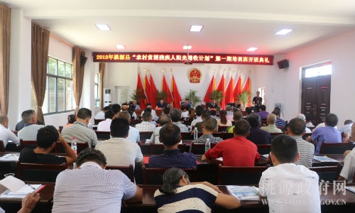 6月11日,桃源县2018年农村贫困残疾人 “阳光增收计划”实用技术培训班 在 桃源县残疾人实用技术培训中心 开班,标志着该县2018年农村贫困残疾人阳光增收计划项目正式启动。此次培训共270人分三期进行,第一期培训93人,第二期培训91人,第三期培训86人,培训时间集中在6月11日至6月28日。 培训班重点学习富硒农产品生产技术,为学员赠送相关生产资料,培训结束后还要为学员产业发展提供后续服务工作, 尽快帮助270户贫困残疾人家庭实现脱贫增收梦想。 开班仪式由县残联副理事长江兴权主持,工会主席祁勇做动员报告,就业服务中心主任周世红宣读了《湖南省残疾人联合会 湖南省财政厅关于在残疾人脱贫攻坚战中实施“农村残疾人阳光增收计划”的通知》。理事长文俊出席开班式并讲话,他指出,帮助建档立卡贫困残疾人家庭摆脱贫困,是党和政府以及贫困群众的共同愿望,也是各级残联的 使命担当,他希望贫困残疾人及其家庭成员 要增强脱贫增收的信心,拓宽产业发展的路子,掌握脱贫增收的技能,取得脱贫增收的实效。